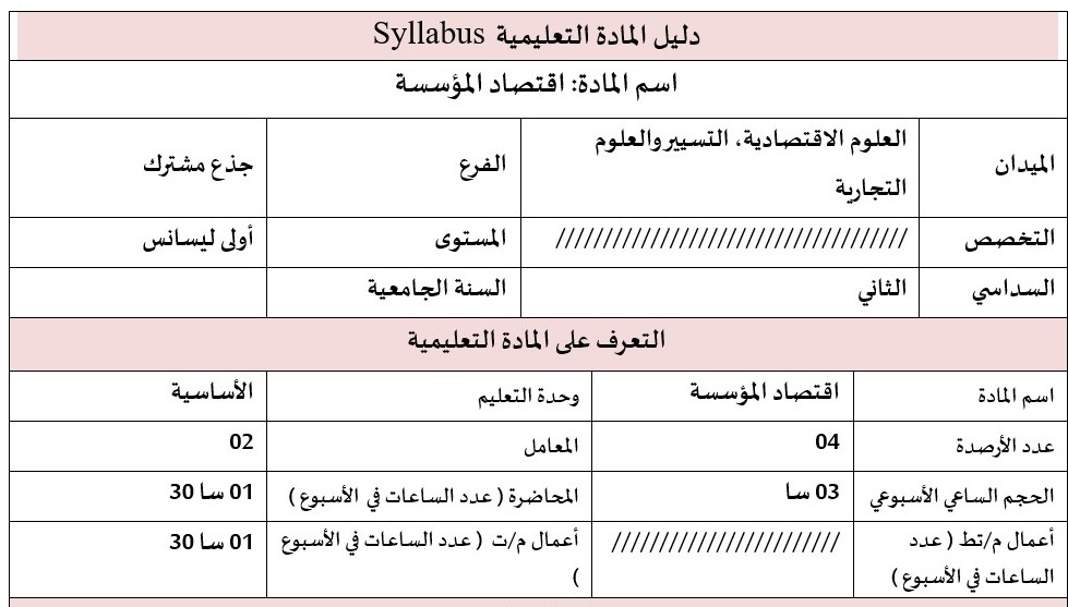 - تمكين الطالب من معرفة أدوات التحليل الاقتصادي للمؤسسة..