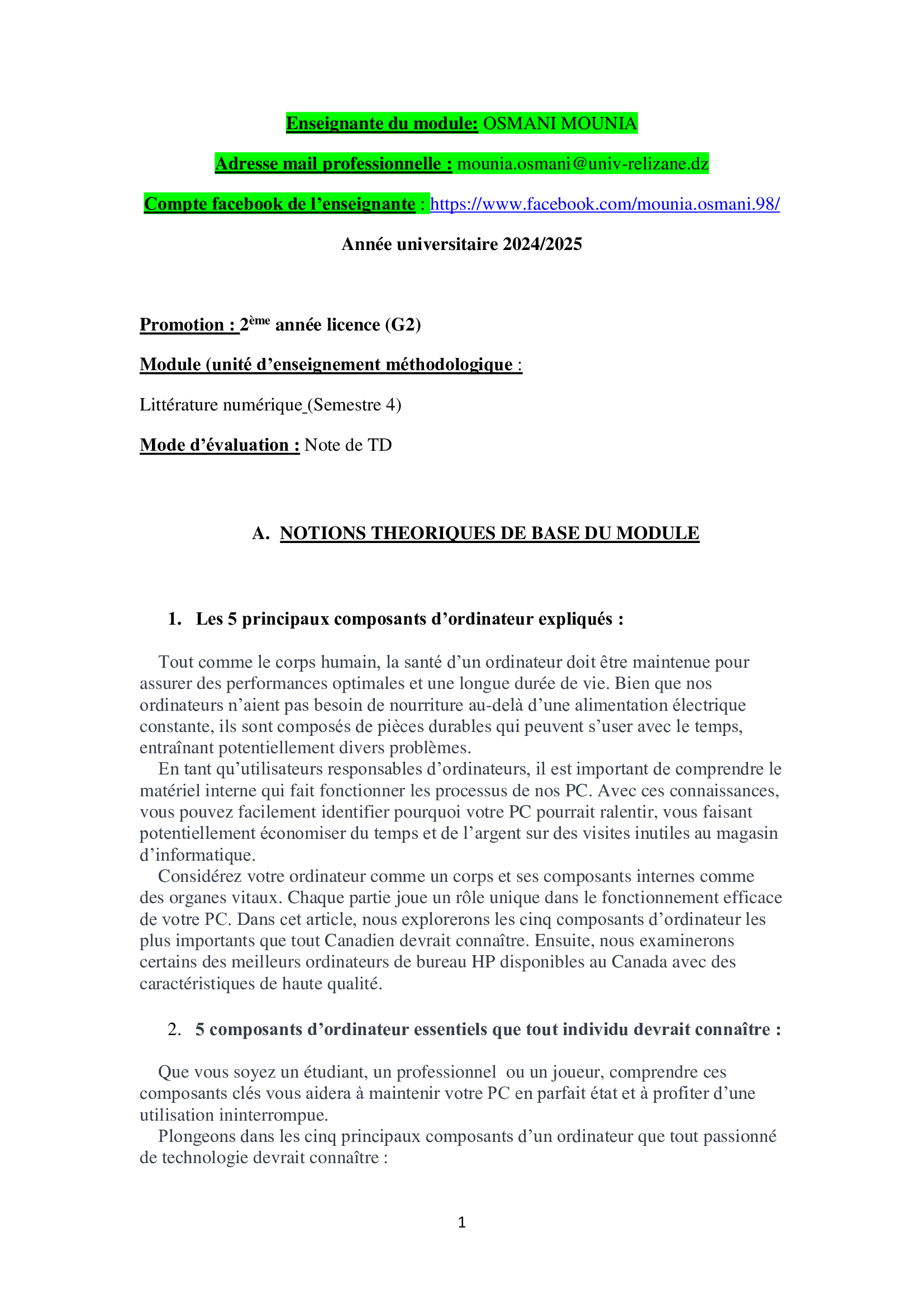 COURS LITTERATURE NUMERIQUE 1 2LMD G2 (S4)