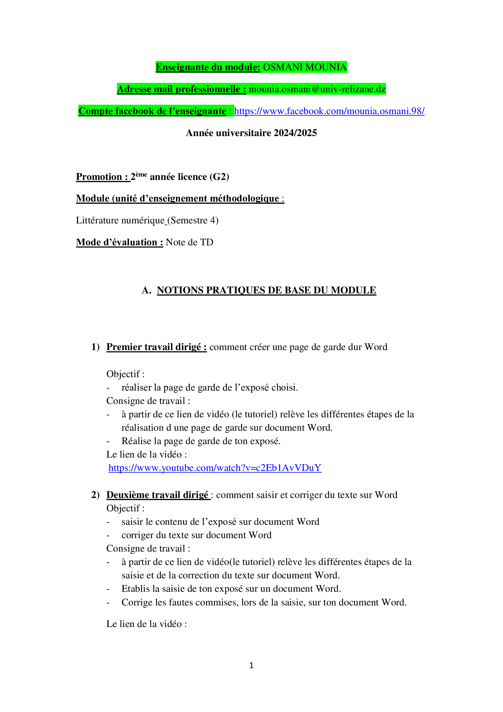 COURS LITTERATURE NUMERIQUE 2 2LMD G2 (S4)